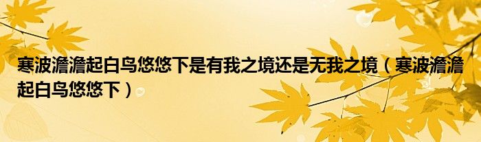 关于寒波澹澹起白鸟悠悠下是有我之境还是无我之境,寒波澹澹起白鸟悠悠下这个很多人还不知道,今天菲菲来为大家解答以上的问题,现在让我们一起来看看吧!
