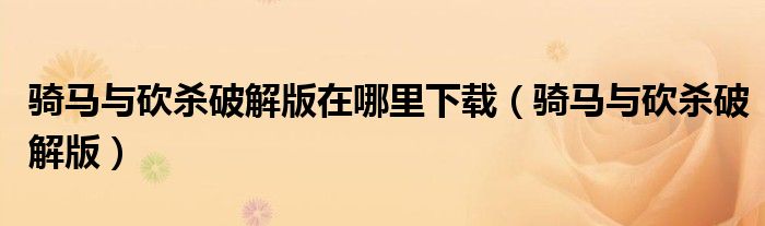 骑马与砍杀破解版在哪里下载(骑马与砍杀破解版)