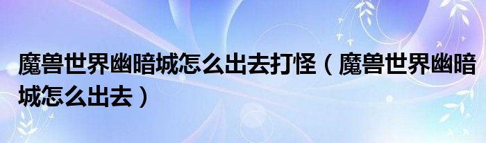 魔兽世界幽暗城怎么出去打怪(魔兽世界幽暗城怎么出去)