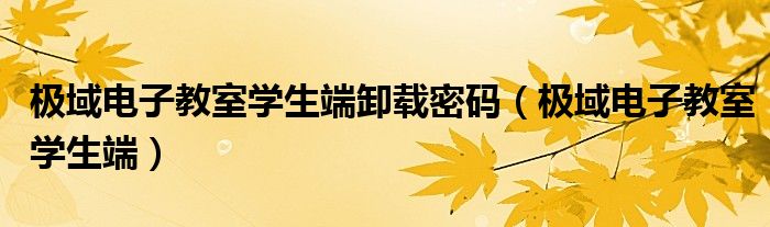 关于极域电子教室学生端卸载密码,极域电子教室学生端这个很多人还不知道,今天菲菲来为大家解答以上的问题,现在让我们一起来看看吧!