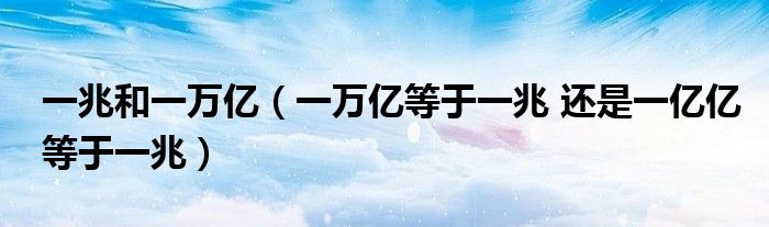 关于一兆和一万亿,一万亿等于一兆 还是一亿亿等于一兆这个很多人还不知道,今天菲菲来为大家解答以上的问题,现在让我们一起来看看吧!