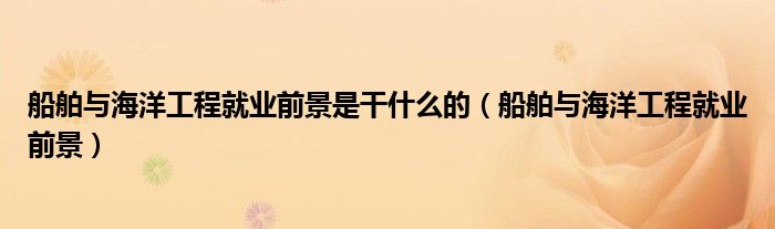 船舶与海洋工程就业前景是干什么的(船舶与海洋工程就业前景)