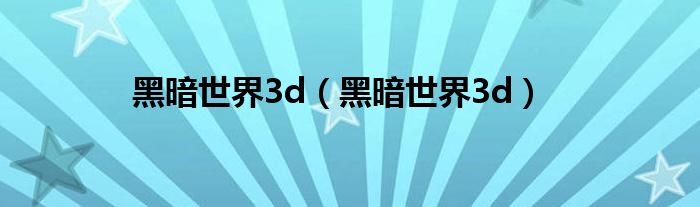 黑暗世界3d,黑暗世界3d很多人还不知道,乐乐来为大家解答以上问题,现在让我们一起来看看吧!