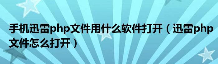 关于手机迅雷php文件用什么软件打开,迅雷php文件怎么打开这个很多人还不知道,今天菲菲来为大家解答以上的问题,现在让我们一起来看看吧!