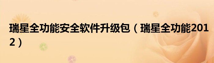 瑞星全功能安全软件升级包,瑞星全功能2012很多人还不知道,乐乐来为大家解答以上问题,现在让我们一起来看看吧!