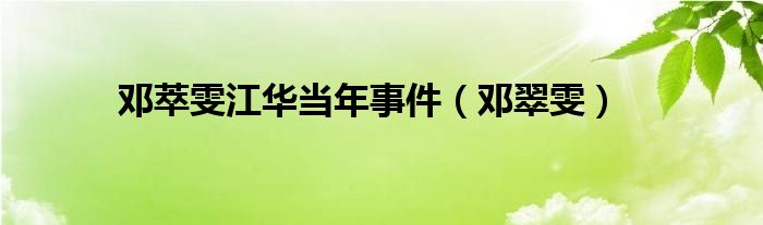 关于邓萃雯江华当年事件,邓翠雯这个很多人还不知道,今天菲菲来为大家解答以上的问题,现在让我们一起来看看吧!