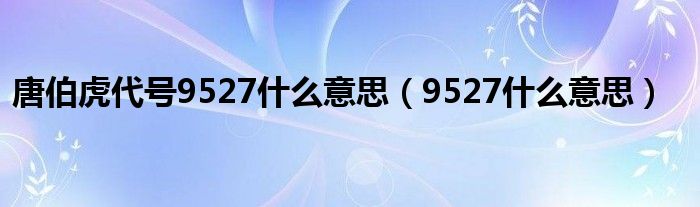 关于唐伯虎代号9527什么意思,9527什么意思这个很多人还不知道,今天菲菲来为大家解答以上的问题,现在让我们一起来看看吧!