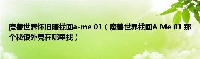关于魔兽世界怀旧服找回a-me 01,魔兽世界找回A Me 01 那个秘银外壳在哪里找这个很多人还不知道,今天菲菲来为大家解答以上的问题,现在让我们一起来看看吧!