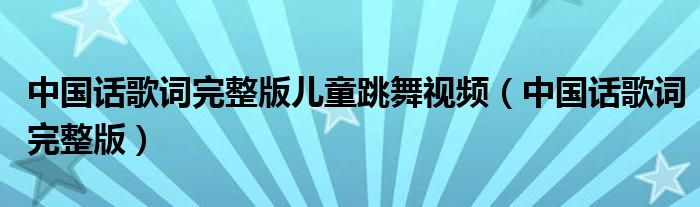 关于中国话歌词完整版儿童跳舞视频,中国话歌词完整版这个很多人还不知道,今天菲菲来为大家解答以上的问题,现在让我们一起来看看吧!
