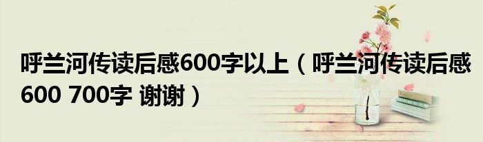 关于呼兰河传读后感600字以上,呼兰河传读后感600 700字 谢谢这个很多人还不知道,今天菲菲来为大家解答以上的问题,现在让我们一起来看看吧!
