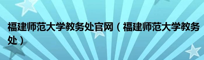 福建师范大学教务处官网(福建师范大学教务处)