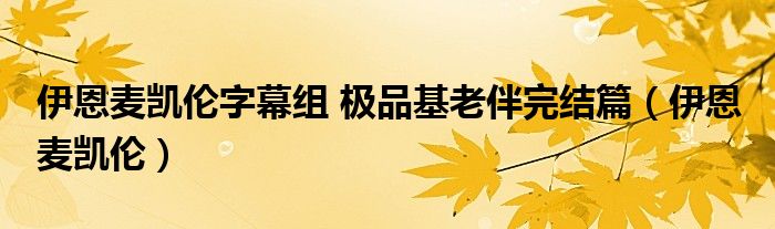关于伊恩麦凯伦字幕组 极品基老伴完结篇,伊恩 麦凯伦这个很多人还不知道,今天菲菲来为大家解答以上的问题,现在让我们一起来看看吧!