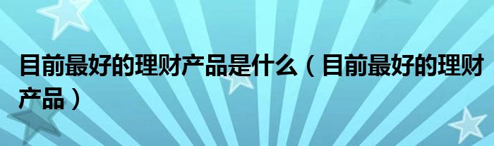 大家好,小飞来为大家解答以上的问题。目前最好的理财产品是什么,目前最好的理财产品这个很多人还不知道,现在让我们一起来看看吧!