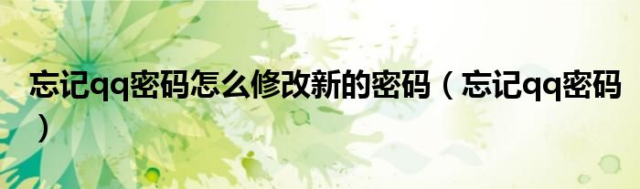 忘记qq密码怎么修改新的密码(忘记qq密码)