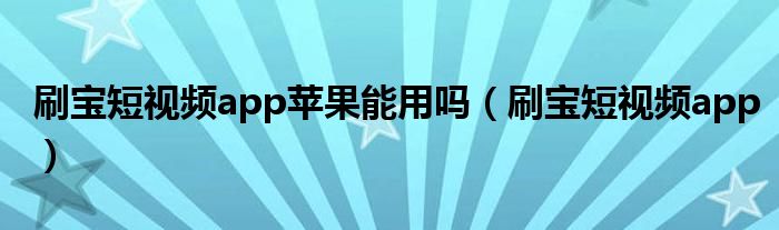大家好,小晋来为大家解答以下问题,关于刷宝短视频app苹果能用吗,刷宝短视频app很多人还不知道,今天让我们一起来看看吧!