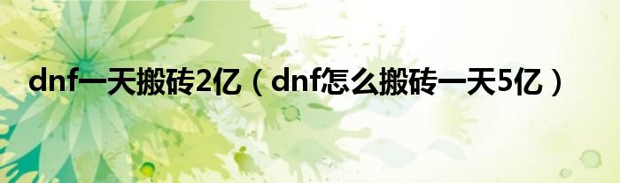 dnf一天搬砖2亿(dnf怎么搬砖一天5亿)