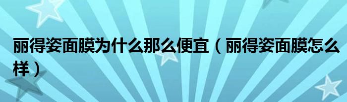 大家好,小晋来为大家解答以下问题,关于丽得姿面膜为什么那么便宜,丽得姿面膜怎么样很多人还不知道,今天让我们一起来看看吧!