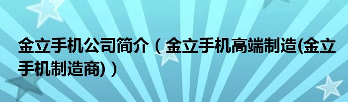 大家好,小常来为大家解答以上问题。金立手机公司简介,金立手机高端制造(金立手机制造商)很多人还不知道,现在让我们一起来看看吧!