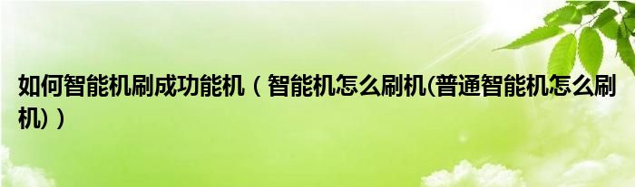 大家好,小常来为大家解答以上问题。如何智能机刷成功能机,智能机怎么刷机(普通智能机怎么刷机)很多人还不知道,现在让我们一起来看看吧!
