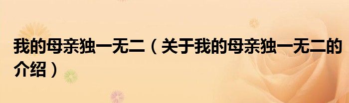 我的母亲独一无二(关于我的母亲独一无二的介绍)