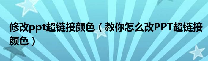 大家好,今天小悦来为大家解答以上问题。修改ppt超链接颜色,教你怎么改PPT超链接颜色很多人还不知道,现在让我们一起来看看吧!
