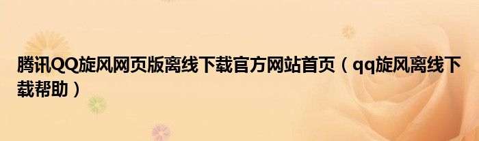大家好,今天小悦来为大家解答以上问题。腾讯QQ旋风网页版离线下载官方网站首页,qq旋风离线下载帮助很多人还不知道,现在让我们一起来看看吧!