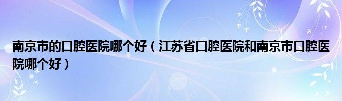 关于南京市的口腔医院哪个好,江苏省口腔医院和南京市口腔医院哪个好这个很多人还不知道,今天菲菲来为大家解答以上的问题,现在让我们一起来看看吧!