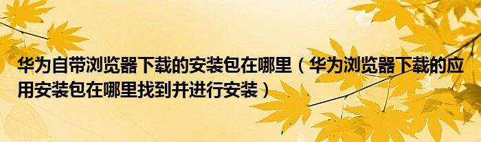 大家好,今天小悦来为大家解答以上问题。华为自带浏览器下载的安装包在哪里,华为浏览器下载的应用安装包在哪里找到并进行安装很多人还不知道,现在让我们一起来看看吧!