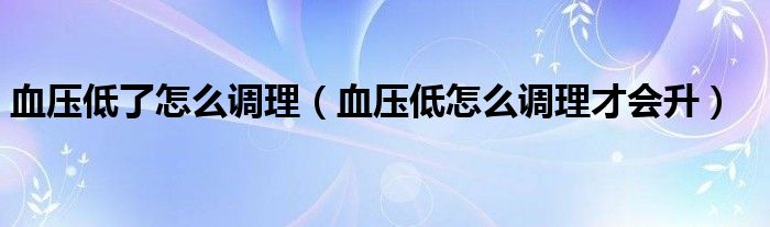 关于血压低了怎么调理,血压低怎么调理才会升这个很多人还不知道,今天菲菲来为大家解答以上的问题,现在让我们一起来看看吧!