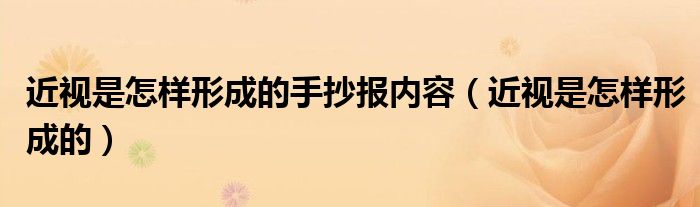 关于近视是怎样形成的手抄报内容,近视是怎样形成的这个很多人还不知道,今天菲菲来为大家解答以上的问题,现在让我们一起来看看吧!
