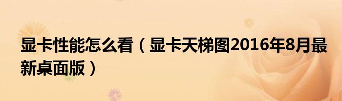 大家好,今天小悦来为大家解答以上问题。显卡性能怎么看,显卡天梯图2016年8月最新桌面版很多人还不知道,现在让我们一起来看看吧!