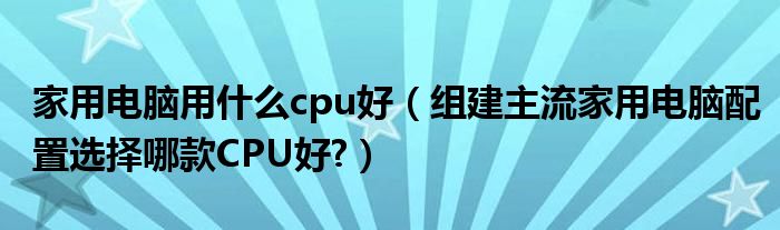 大家好,今天小悦来为大家解答以上问题。家用电脑用什么cpu好,组建主流家用电脑配置选择哪款CPU好?很多人还不知道,现在让我们一起来看看吧!