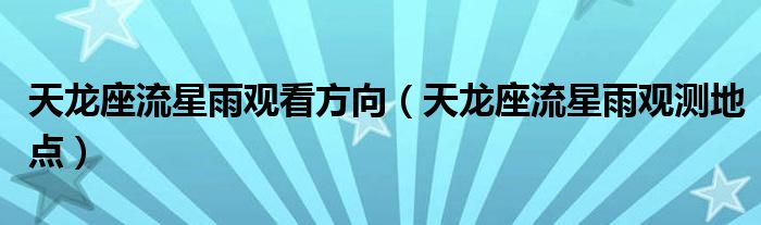 大家好,雨雨来为大家解答以上问题,天龙座流星雨观看方向,天龙座流星雨观测地点很多人还不知道,现在让我们一起来看看吧!