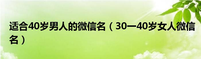 大家好,雨雨来为大家解答以上问题,适合40岁男人的微信名,30一40岁女人微信名很多人还不知道,现在让我们一起来看看吧!