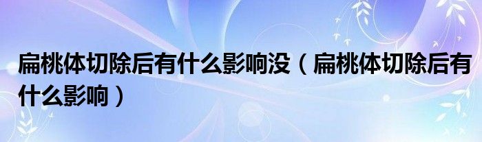 关于扁桃体切除后有什么影响没,扁桃体切除后有什么影响这个很多人还不知道,今天菲菲来为大家解答以上的问题,现在让我们一起来看看吧!