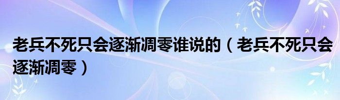 关于老兵不死只会逐渐凋零谁说的,老兵不死只会逐渐凋零这个很多人还不知道,今天菲菲来为大家解答以上的问题,现在让我们一起来看看吧!