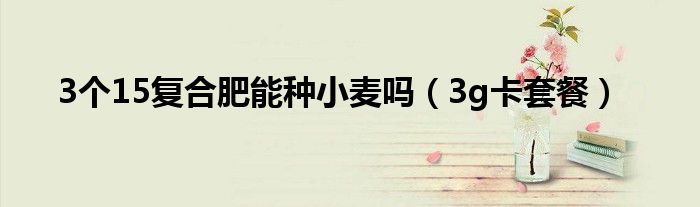 大家好,雨雨来为大家解答以上问题,3个15复合肥能种小麦吗,3g卡套餐很多人还不知道,现在让我们一起来看看吧!