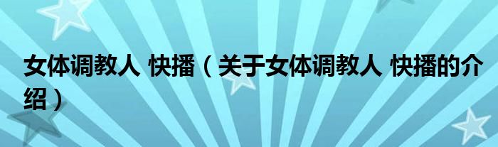 女体调教人 快播(关于女体调教人 快播的介绍)