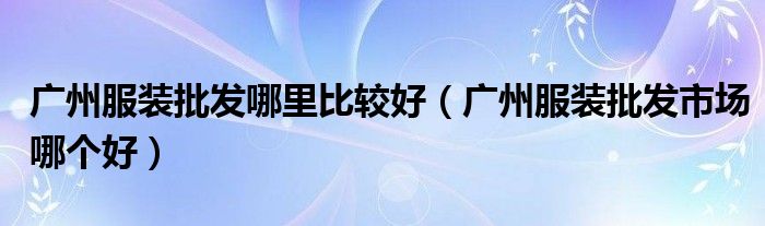 广州服装批发哪里比较好(广州服装批发市场哪个好)