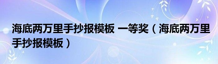 关于海底两万里手抄报模板 一等奖,海底两万里手抄报模板这个很多人还不知道,今天菲菲来为大家解答以上的问题,现在让我们一起来看看吧!