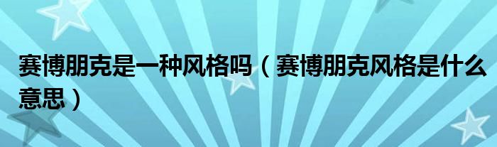 关于赛博朋克是一种风格吗,赛博朋克风格是什么意思这个很多人还不知道,今天菲菲来为大家解答以上的问题,现在让我们一起来看看吧!