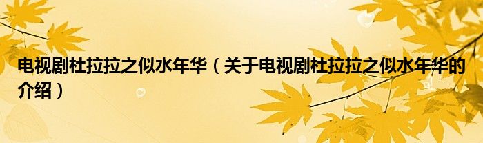 大家好,今天小乐来为大家解答以上的问题。电视剧杜拉拉之似水年华,关于电视剧杜拉拉之似水年华的介绍很多人还不知道,现在让我们一起来看看吧!