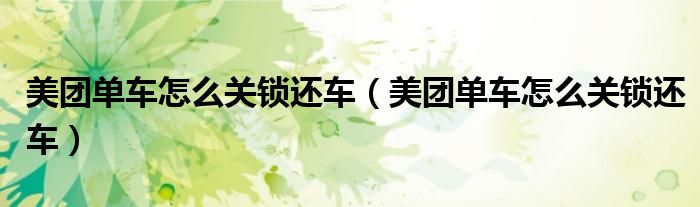 大家好,跳跳为你解答以上问题。美团单车怎么关锁还车,美团单车怎么关锁还车这个问题很多人还不知道,现在让我们一起来看看吧!