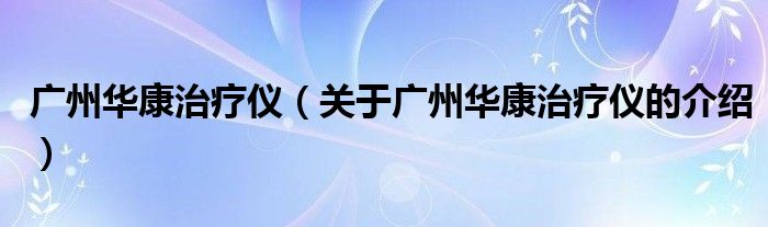 大家好,今天小乐来为大家解答以上的问题。广州华康治疗仪,关于广州华康治疗仪的介绍很多人还不知道,现在让我们一起来看看吧!