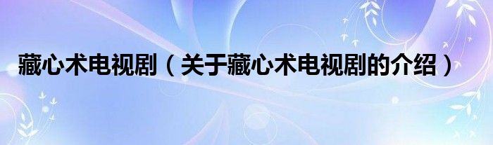 藏心术电视剧(关于藏心术电视剧的介绍)