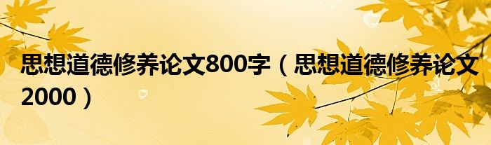关于思想道德修养论文800字,思想道德修养论文2000这个很多人还不知道,今天菲菲来为大家解答以上的问题,现在让我们一起来看看吧!