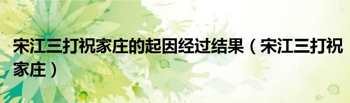 关于宋江三打祝家庄的起因经过结果,宋江三打祝家庄这个很多人还不知道,今天菲菲来为大家解答以上的问题,现在让我们一起来看看吧!