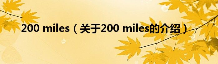 大家好,今天小乐来为大家解答以上的问题。200 miles,关于200 miles的介绍很多人还不知道,现在让我们一起来看看吧!