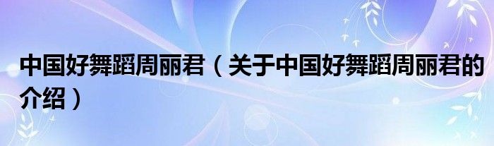 大家好,今天小乐来为大家解答以上的问题。中国好舞蹈周丽君,关于中国好舞蹈周丽君的介绍很多人还不知道,现在让我们一起来看看吧!