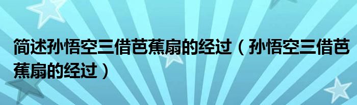 关于简述孙悟空三借芭蕉扇的经过,孙悟空三借芭蕉扇的经过这个很多人还不知道,今天菲菲来为大家解答以上的问题,现在让我们一起来看看吧!